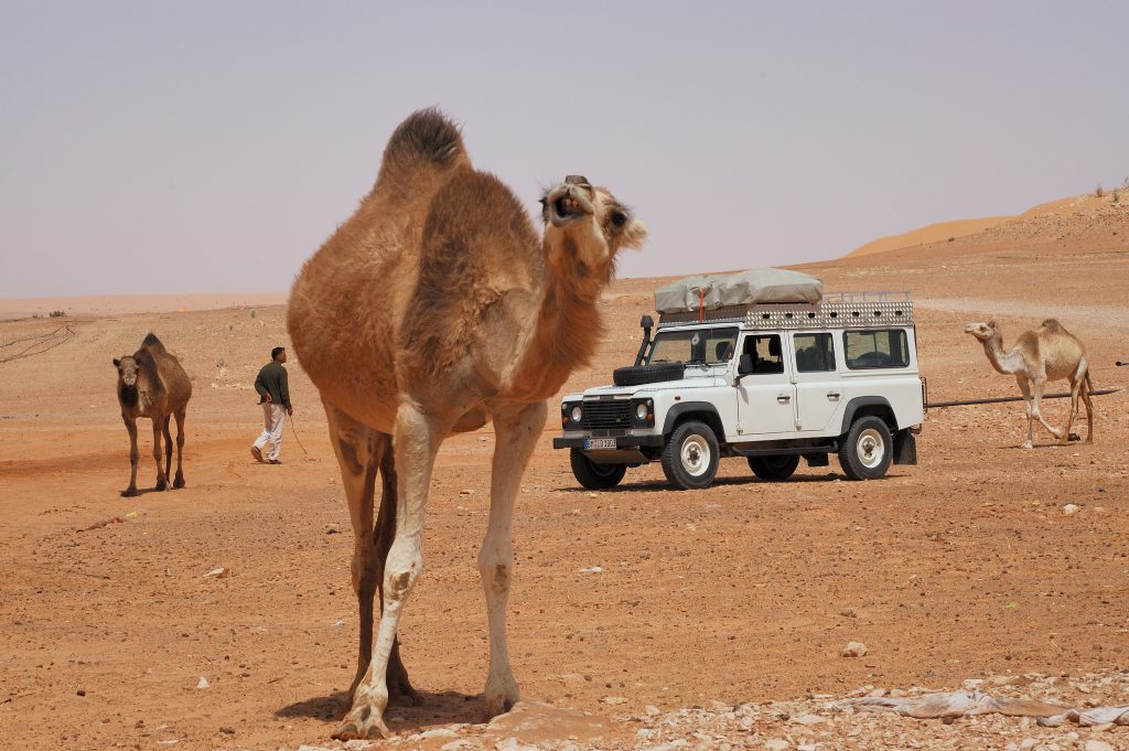 Bis zum Abendessen im Camp wollten wir nirgendwo einkehren, also machten es Said und Mustafa möglich, dass wir in einem Lulu Hypermarket einen echten Kulturschock bekamen. Ein Supermoderner Supermarkt, wie wir ihn nicht einmal aus Frankreich oder den Britischen Inseln kennen – allein die Fleisch-, Snack- und Brottheke war länger als jeder handelsübliche Aldi*. Wir deckten uns mit belegten Broten, Obst, Croissants, Nüssen und Naschzeug ein und erreichten schon bald Bidiya, wo erneut Geländefahrzeuge auf uns warteten.